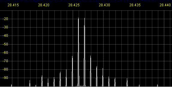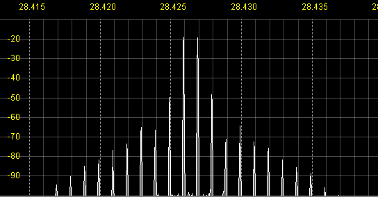 spectrogram of my Kenwood TS-450SAT's output on 10m. The 3rd
