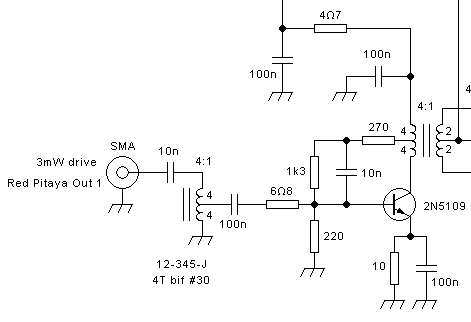drive current the Red Pitaya's 50Ω output is transformed down in a 4:1