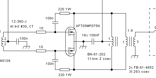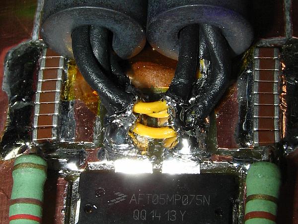 The final stage is built around a modern LDMOSFET, an AFT05MP075N. This