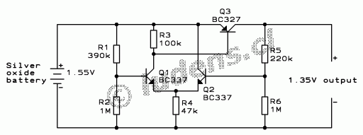 Silver oxide batteries with dropping diode: A silver oxide cell produces a nominal 1.55V. This voltage is relatively stable, but not as much as that of a mercury cell. It's typically 1.65V for a new cell, while the end of life is usually rated at 1.35V. Some people use these cells, and connect them in series with a Schottky diode, in the hope that the diode will drop about 0.2V, ending up with the correct voltage. This is a very poor solution, for three reasons: