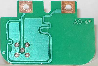 En los puntos soldados va un conector coaxial por el otro lado de la placa, que es la puerta desbalanceada de este balun. Las dos conexiones de cobre desnudo arriba forman la puerta balanceada.