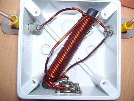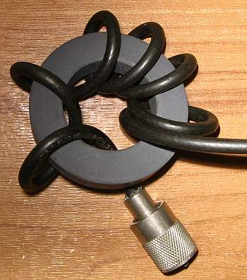 Alguna gente prefiere hacer estos balunes enrollando el cable sobre un trozo de tubo plastico de gran diámetro, dejando las espiras lado a lado. Esto resulta en una inductancia levemente menor, pero también en una capacidad parásita mucho menor que el enrollado compacto de la foto, siendo entonces más adecuado para las bandas altas.