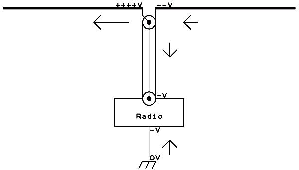 Como contraparte a ésto, veamos el caso de un típico transceptor de radio actual. Este posee un conector coaxial en su salida, tiene gabinete metálico, y se usa normalmente con su gabinete conectado a tierra. El enchufe coaxial tiene su polo exterior al gabinete, y por lo tanto a tierra. Las corrientes de radiofrecuencia que circulan por los dos polos de este conector son de magnitud igual y polaridad opuesta, y por lo tanto balanceadas, igual que en la antena dipolo; en cambio las tensiones no lo son! Mientras el contacto interior del enchufe coaxial lleva tensión de radiofrecuencia respecto a tierra, el contacto exterior está unido a tierra, y por lo tanto no puede llevar tensión. Entonces estamos ante un sistema desbalanceado, ya que la tensión respecto a tierra aparece solamente en uno de los dos polos, y así la suma de las tensiones de los dos polos no es cero.