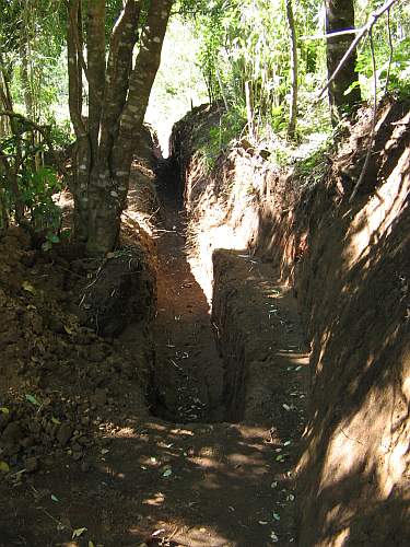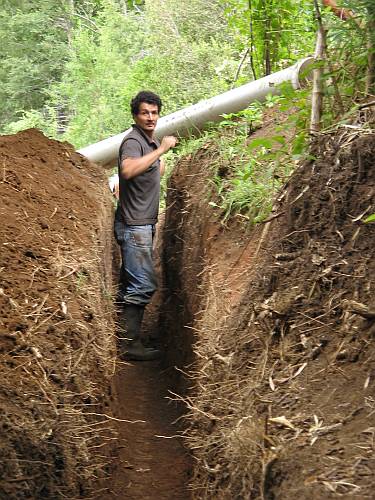 Digging a trench through the forest is hard work! It was all done by my neighbor Gabriel and his son.