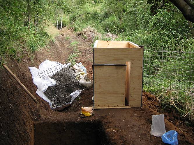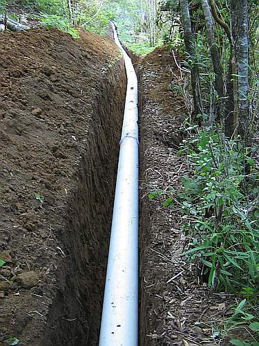 From the forebay, the 250mm PVC pipe will run underground through this trench.