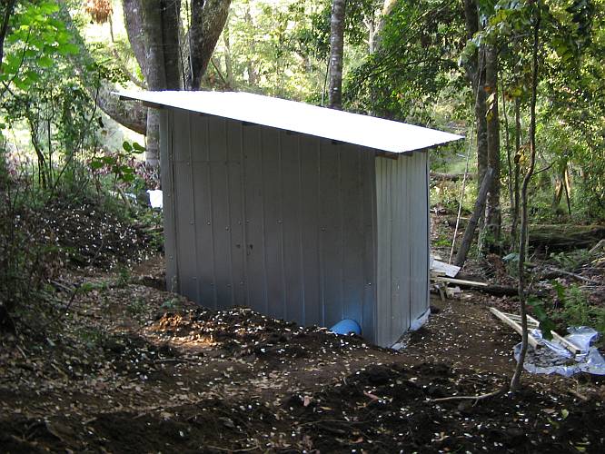 Metal sheeting was used for both the roof and the walls. I will probably paint it later, when there is more time. Also the wall sheeting still needs a few more nails. This is the first house I ever built with my own hands, so watch it with due respect!