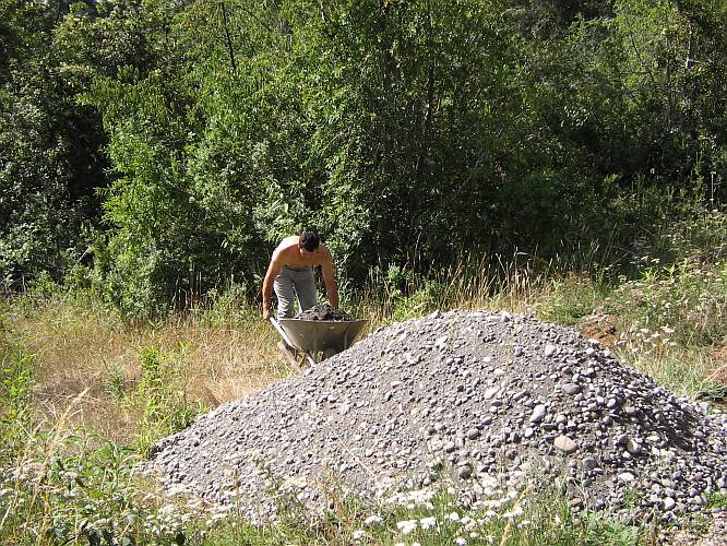 And then the hardest work started for him: Hauling in about three tons of gravel, sand and cement, by wheelbarrow!