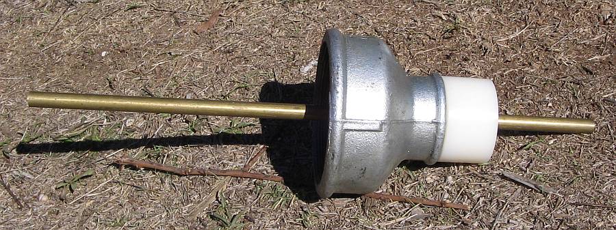 The high voltage line from the powerhouse to my little cabin was also built. First, I made two dozen of these assemblies, which would be used for joining the conduit sections.