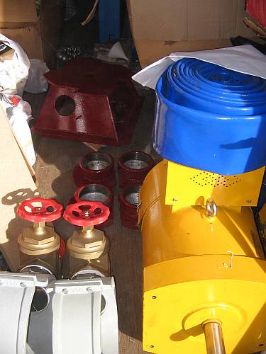 The four 4" valves and assorted fittings have been ordered but not yet arrived. I don't know yet how to make the distribution box that has to connect to 250mm PVC pipe on one side, and to four 4" brass valves on the other side, with a pressure gauge on top. Once more, suggestions are welcome!