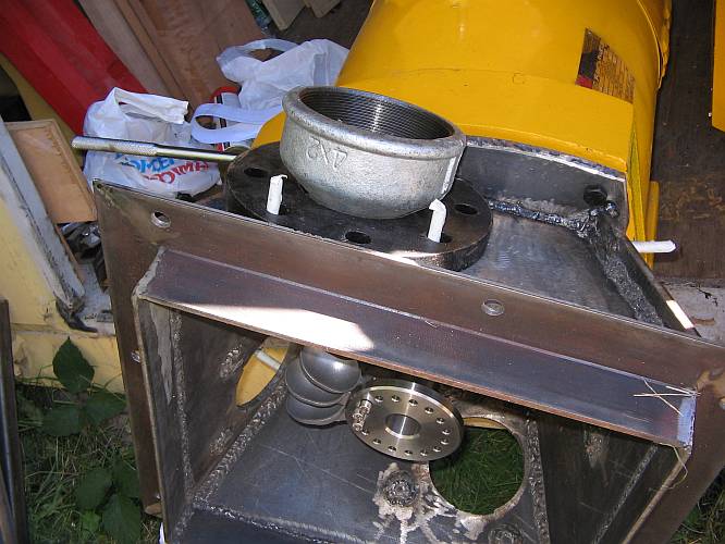 They will be welded to flanges in the position shown here. The big side will get hose connections for 4" hose, while the small side will get homemade nozzles. The first nozzles will have 27mm outlet diameter, and I intend to turn them from nylon and give them a simple conical shape. Later I will probably make a range of nozzles of different sizes. The idea is to be able to exchange nozzles simply and quickly, by removing the whole injector unit from the turbine casing.