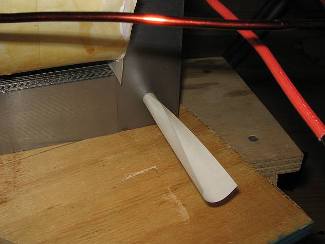 Using this tool, it's easy to see exactly where the water jet will land. The only problem was to decide where exactly on the spoons the jet should land! Good information is hard to come by. I finally made the center line of the jet hit the spoons about 8mm below the top surface, at the point where the spoon center line is perpendicular to the jet. Also, I placed the jets on a slightly smaller radius than the center of the spoons are, because this will keep the outer parts of my rather thick jets from missing the spoons. In any case, the position of the jets can be fine tuned later about 8mm to any side.