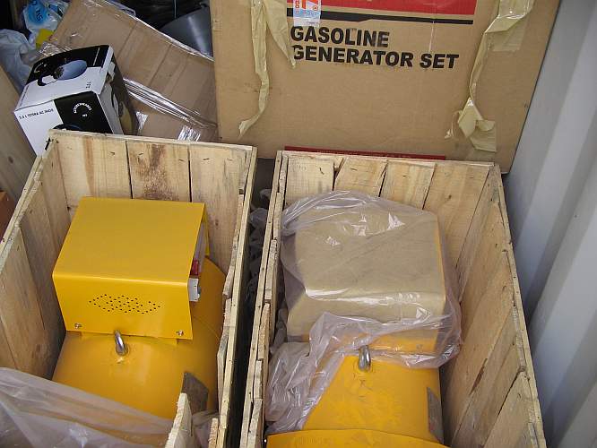 Here you can see one of them hoisted into the air for unpacking. Its companion sits in the back.