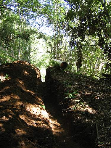 After the muddy area, the trench runs through the forest in stable soil, almost horizontally.
