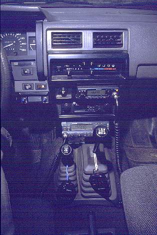 The VHF transceiver, a TM-241, fits nicely into the hole left after removing the ash tray. I'm a nonsmoking ham, and have a lot more use for a radio than an ash tray!!!