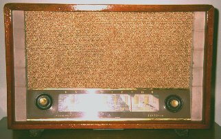 I have just one doubt about this radio: The plate behind the dial, instead of the accustomed dark fabric or paper, is covered by a photo of a famous singer and movie actress of that time! She lies on her belly and stretches her bare feet more or less towards the 1300kHz mark. It can barely be seen in the photo on top. Can this be original??? The photo really looks like it was originally mounted at the factory! So I left it in place. Anyone knows anything about half-naked girls hiding behind radio dials?