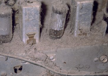 The golden lines on top and under the dial were totally blackened by time and sulfur in the air. They were no gold, after all, but just humble brass. I polished them with a Dremel tool and lacquered them. They shine as new. The same applies to the brass inserts in the two knobs.