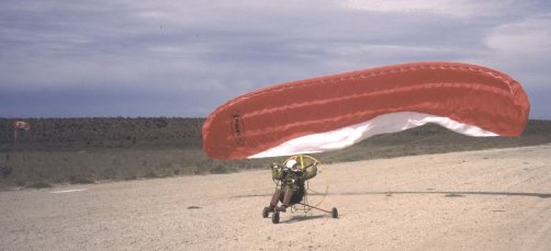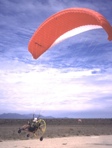 Trike landings are very easy. There is no need to "lower the undercarriage", that is, getting out of the seat. There is no real need to flare, although a well done flare eliminates any landing impact. No flare is better than excessive flare, at least with my slightly overloaded perfo wing. Once I ran into a wind shear problem and did a very rough landing, coming down in steps instead of doing it smoothly. The trike absorbed the impact without complaint. On foot this landing would have meant rolling over, with possible damage to the motor unit.
