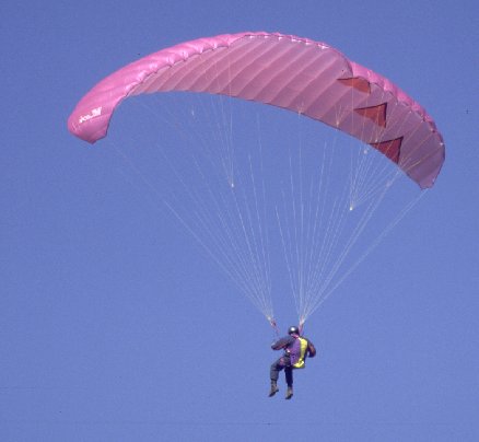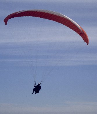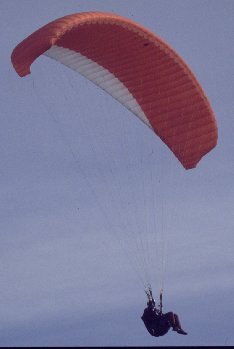 I had another idea in my mind. I already intended to add a motor, so I could break free of congested ridges and fly out and away, in unrestricted free and uncongested airspace. But this would be later, for the moment I needed to gain experience flying without an engine. So I needed a wing with enough weight range to accommodate me both with and without the motor. After three days of studying the catalogs, I made my mind up to try the FreeX Frantic Plus wing. It's a performance intermediate, but it has very good safety ratings too, and enough weight range for my purposes. When I asked Jens what he thought about it, feeling a bit guilty for shooting so high, he told me that it was within my abilities, but it would be a bit touchy at first. I should not fly it in severe thermal conditions at first. Anyway I didn't intend that! So I went ahead and ordered that wing, together with an APCO Silhouette harness, the larger APCO Mayday emergency parachute (it feels good to have one...), a helmet, and several other minor things. It all set me back by about US$3000.