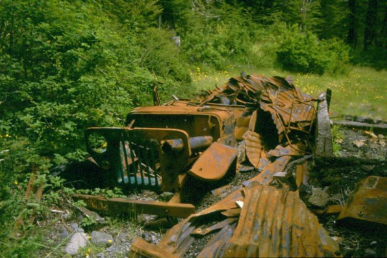 Volcano burned down, this Willys Jeep was trapped in the flames. Its charred