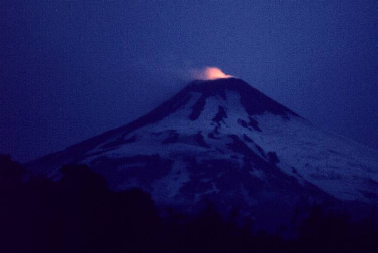 the crater of Villarica Volcano is the smoke plume, lit from below by incandescent