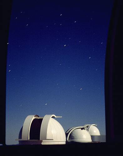 of the late evening sky, seen through the dome slit of a telescope at the