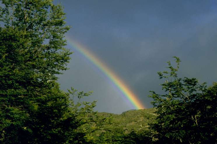 the sun, shines through rain or spray. Photographing rainbows is easy,