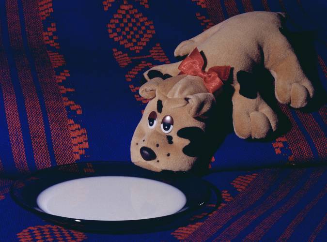 that being just plush and foam filling, he has no right to drink milk.
