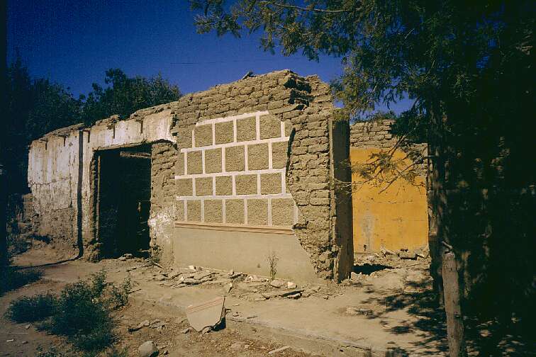 A lone front wall, built from Adobe like