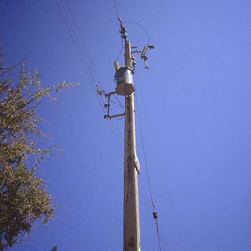 A pole transformer, its input switch open,
