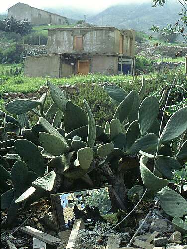the house, scattered with cactus.