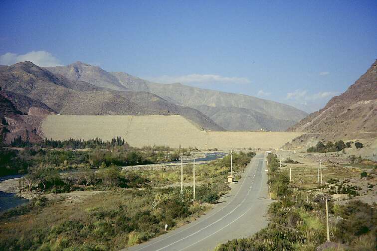 The dam was built by heaping up and compacting gravel, and adding a concrete layer to make it watertight. This kind of construction has the advantage of being highly resistant to earthquakes, which is a very important point in Chile! After all, the world's strongest earthquake ever registered happened here.