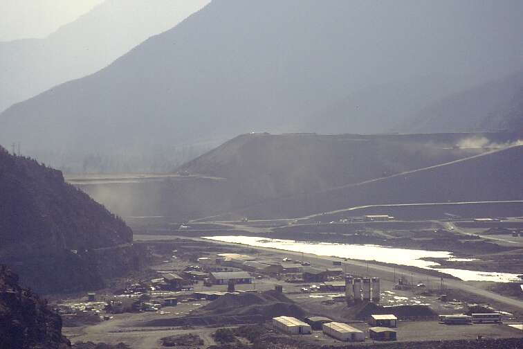 Behind the dam. Most of the action happened on this side. Large mining trucks were used to move the enormous quantities of material needed for this project. The building company set up a camp here.