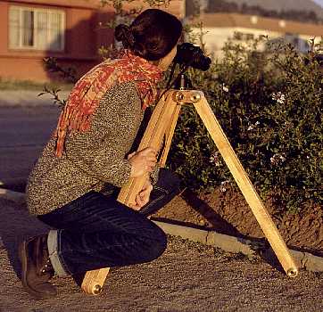 This tripod was designed to be able to support any of my cameras and lenses with enough stiffness to use any exposure time; to be tall enough to place the camera at eye level; to be versatile enough to reach ground level and any strange location; and to be light enough to be carried a reasonable distance, but without expecting to take it on a long mountaineering trip. It also had to be water-resistant, to set it up in a river.